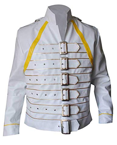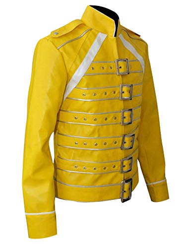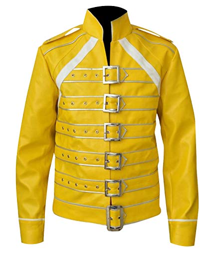 Be the first to review “Freddie Mercury Wembley Concert Military Strap Queen Yellow Leather Biker Jacket”